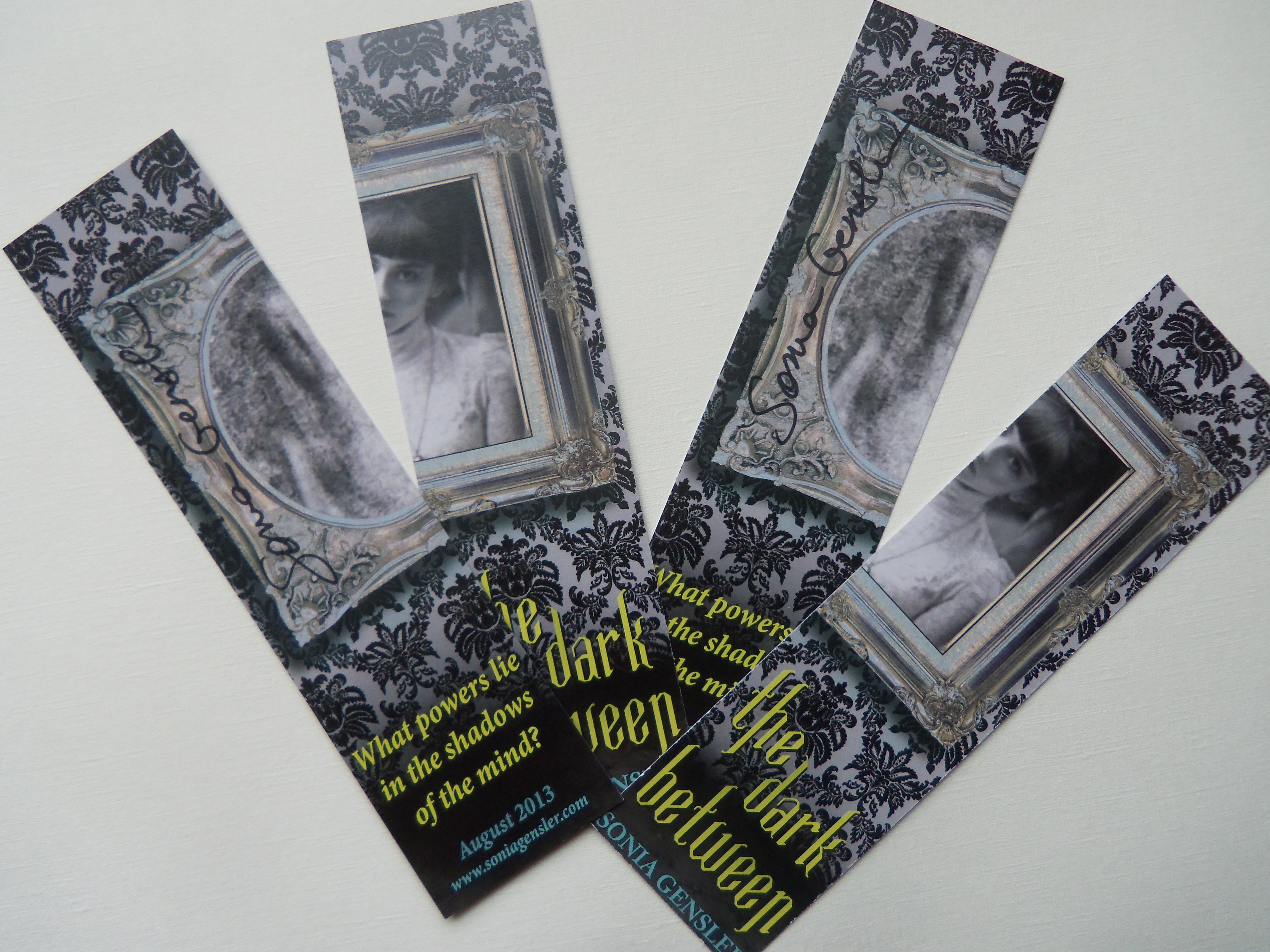 So today I have 4 signed DARK BETWEEN bookmarks for you. All you have to do to qualify is discover more about Sonia on your own.
