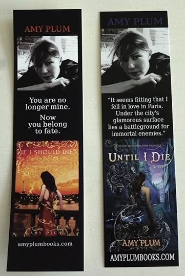Today’s giveaway is 2 signed bookmarks: my brand new IF I SHOULD DIE bookmark and a vintage (okay, last year) UNTIL I DIE bookmark.