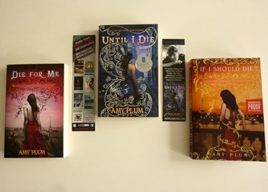 You have several chances to win a fabulous prize pack including an original Dark Days bookmark (with the Kate-in-the-Boat cover), a signed UNTIL I DIE bookmark, a signed copy of DIE FOR ME, a signed copy of UNTIL I DIE and…drumroll please…a signed ARC of IF I SHOULD DIE! (I know…huge prize pack!!!) (International.)