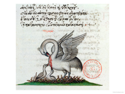 First I thought of self-sacrifice, and used the medieval image of the pelican piercing its breast to feed its young with its blood. Um…yeah. That’s my geeky art historian side coming out. I wish I still had my first attempt at drawing it. It looked more like an epileptic swan than this:
