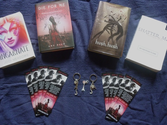 SPONSORSHIP CONTEST: each time you get someone who is not already following me on FB (facebook.com/amyplumfanpage) or Twitter (twitter.com/iheartrevenants) to follow or "like", you will win one entry into my SPONSORSHIP contest. There is no limit on entries. Once both my Twitter and FB followers reach 2000, I will have a randomized drawing. To enter, just post a comment here with 1. your name, 2. whether you sponsored on FB or Twitter, 3. the friend you're sponsoring's FB or Twitter name*, so that I can check to see if they did, indeed, just join follow. (Sponsors for people who unfollow and then follow again will be disqualified.) Prizes: a signed ARC of UNTIL I DIE (once it is out), a signed copy of DIE FOR ME, a hardback copy of HUSH, HUSH, 20 signed bookmarks (20 separate prizes), 2 Eiffel Tower keychains with a J (for Jules – I'm out of V for Vincent ones!), and 1 Eiffel Tower charm with a pink heart. That is a LOT of prizes!!!