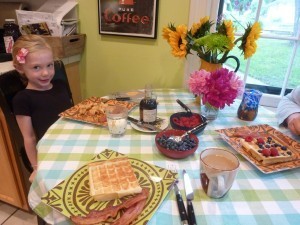 T minus 1 day: woke up to this breakfast, with my adorable goddaughter, Tizzy