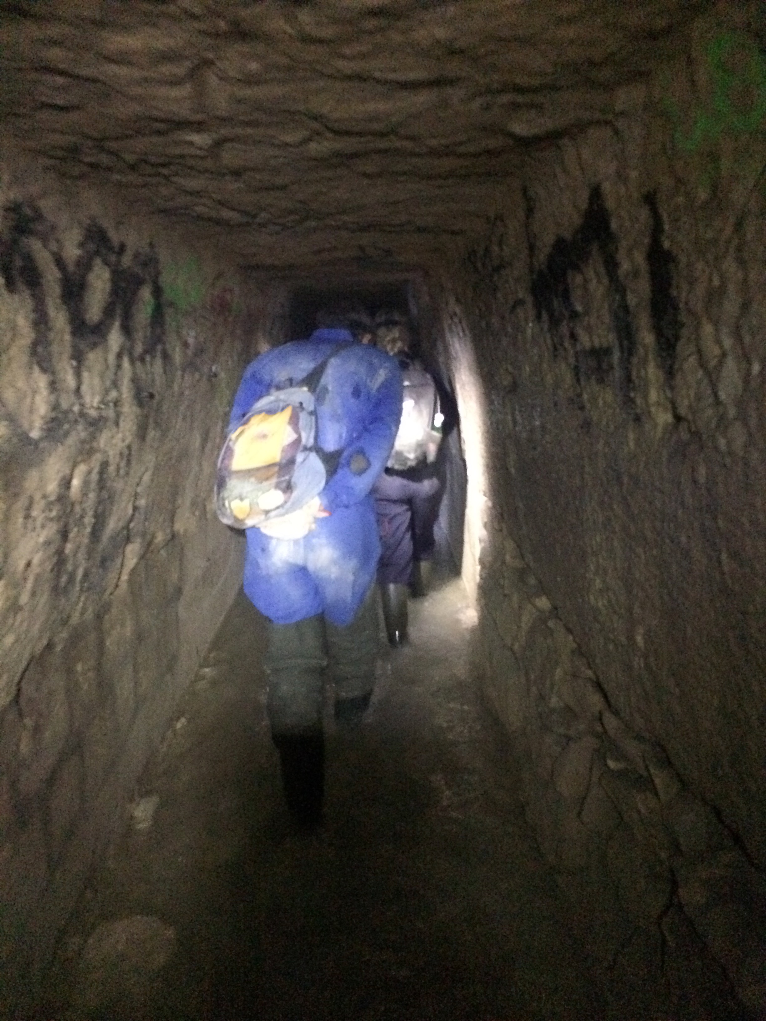 Once we passed through the tiny hole that gave us access to the catacombs, we were able to move standing up for a while. Most of the passages are like this: