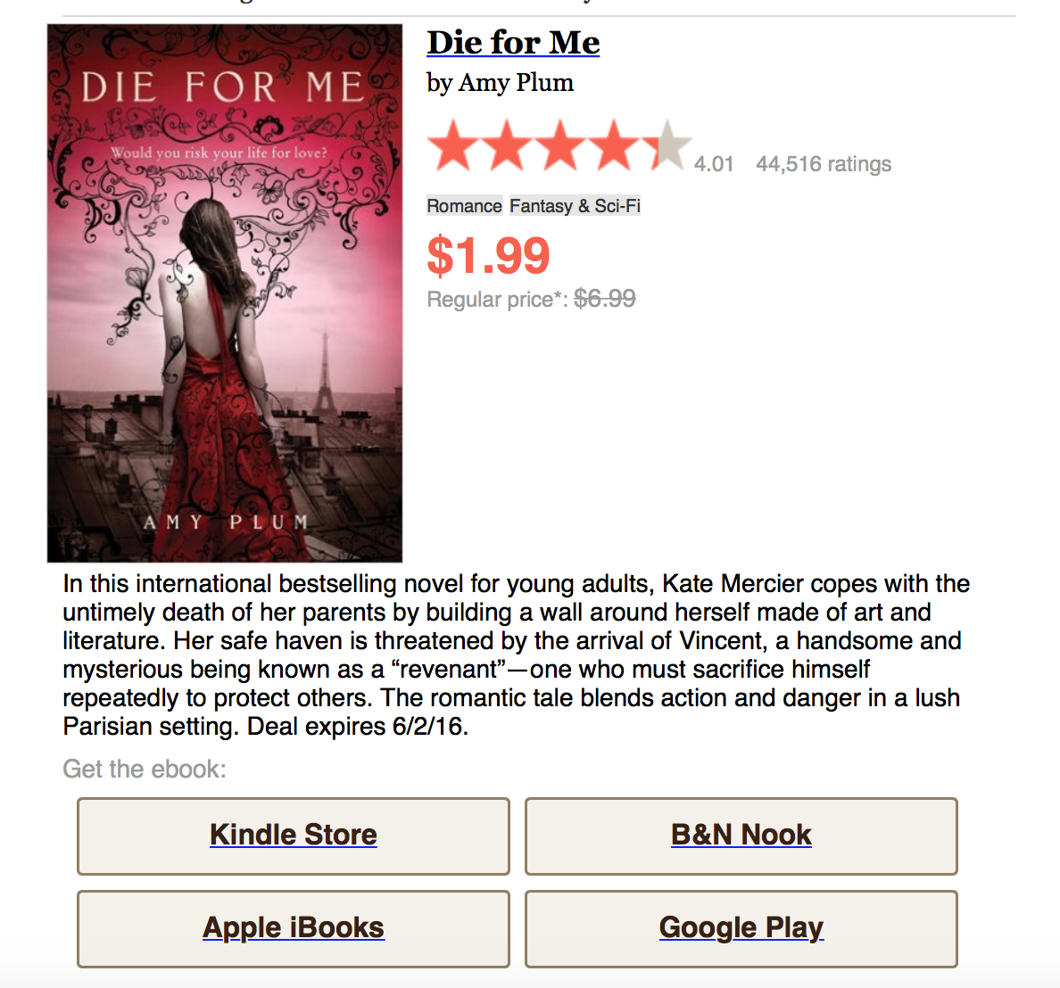 Goodreads Deals 2-day promotion on DIE FOR ME! (Until June 2)