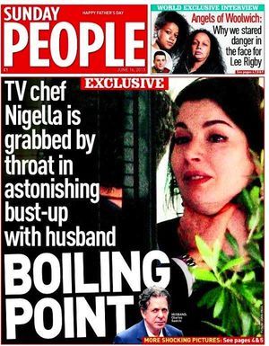 What happened that day at Scott's, a trendy London restaurant, is not up for much debate. A heated argument had broken out, that much was clear. But Saatchi claimed he only grabbed Lawson's neck to "emphasize" his point and not, as many eyewitnesses claimed, to hurt or scare her. "The pictures are horrific but give a far more drastic and violent impression of what took place. Nigella’s tears were because we both hate arguing, not because she had been hurt," he wrote in his official response in London Evening Standard. The pictures and witnesses paint a much differnet picture, one of Saatchi grabbing her by the neck multiple times, swearing at her and twisting her nose. Lawson took their kids and left the family home shortly after. Saatchi was given a "caution" by police for assault after an investigation.