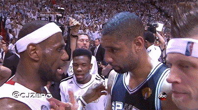 So it's pretty obvious who this particular ESPN commentator was rooting for in this series — unlike pretty much everyone else at the Worldwide Leader in LeBron love. And we suppose there's a kind of moral victory in Tim Duncan blowing it. But come on, guys: Watching your favorite team lose over and over again is unhealthy. Admit that LeBron did his thing. Embrace it. Hug it out.