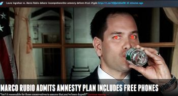 One of the main complaints some conservatives have against immigration reform is that a path to citizenship for illegal immigrants would create millions of moochers living off federal benefits. And what is the No. 1 symbol of American moocherdom? The Obamaphone. And so on Wednesday Shark Tank's Javier Manjarres unearthed its immigration counterpart: The MarcoPhone. Named for Florida Sen. Marco Rubio, Manjarres thought he spotted a provision in the 855-page immigration bill that gives free cell phones to undocumented immigrants. Breitbart News reposted the story. Talk radio host Laura Ingraham picked it up. MofoPolitics.com led with the image at right. The only problem was that the MarcoPhone is even less real than the Obamaphone. The immigration bill gives cell phones to ranchers so they can report illegal immigrants and violence on the border. It was inspired by a rancher who was killed by illegal immigrants. Breitbart's Matthew Boyle posted a clarification.