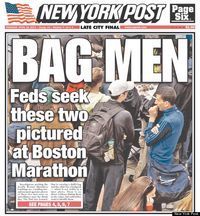 There have been two things the reports of suspects reaching the media have had since the blast: they've been wrong and they've involved men of Middle Eastern descent. Thursday morning started with a 17-year-old track star of Moroccan descent splashed across the front page of the New York Post. On Wednesday, CNN anchor John King erroneously reported that a "dark-skinned male" was in custody. On Monday, the New York Post (banner week for those guys) lead the charge on the report that a Saudi student injured in the blast was a "suspect" on Monday.
