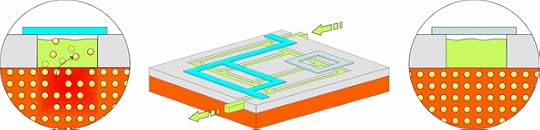 The new so-called nanofluidic circuit works a little bit like a network of streams. A charged fluid moves over the surface of the circuit changing its properties (e.g. flipping a switch "on" or "off") with the positively and negatively charged atoms in the fluid. Like the synapses of the brain, the ions operate in three dimensions, a game changer in terms of efficiency and uncharted territory in terms of computing. "We could form or disrupt connections just in the same way a synaptic connection in the brain could be remade, or the strength of that connection could be adjusted," Stuart Parkin, a physicist and IBM Fellow, told The New York Times. It's a little bit easier to visualize. Below, the green represents the ionic fluid and the orange is the surface.
