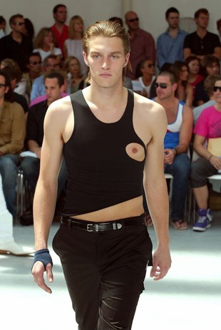 Visiting Casavant’s collection, which is housed in his Manhattan apartment, is like taking a trip through recent fashion history. He has iconic pieces, such as a green version of the tank-top with the nipple cut-out that featured on the runway and in photographer Juergen Teller’s famous ads for Lang. He has bomber jackets, and shiny astronaut pants, as well as Lang’s precisely tailored suits and numerous pairs of jeans.