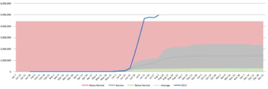 Now compare that to what’s happening in Alaska, which is truly terrifying. This could be the state’s worst fire season on record. Fires there are literally off the charts: