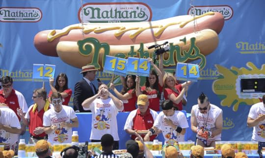 There’s no comparison when it comes to media coverage, either. In recent years, the Nathan’s contest has been aired on an ESPN network, though in what should be a worrying sign for MLE, the only way in previous years to view the contest live has been on the web-only ESPN3. The television channels have taken to airing the event on tape delay. (This isn’t the case this year, though: ESPN2 will broadcast the men’s competition live even as the women’s competition is web-only.) Regardless, you’d be hard-pressed to find another competitive eating-event with any national coverage, to say nothing of coverage on a major carrier.