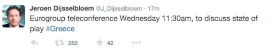 As expected, an emergency conference call between Eurogroup officials has ended without a deal for Greece, according to tweets from Finland’s representative, Alexander Stubb. The BBC reports that Eurogroup chief Jeroen Dijsselbloem said conversations will resume tomorrow after Greece sends a new proposal, there’s no extension. That means even if tomorrow’s talks are successful, they won’t be in time to prevent Greece from defaulting on its debt at midnight. The European Financial Stability Facility tweeted a release about the impending default from their account on Tuesday.