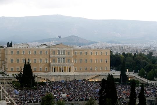 Protesters are gathering in Athens to agitate for a “yes” vote on Sunday’s referendum about whether to accept the terms of the deal Greece’s creditors offered last Thursday. Greek Prime Minister Alex Tsipras, who effectively shut down negotiations Saturday morning with his surprise announcement he’d put the proposals to voters, has urged a “no” vote. A “yes” vote could mean the end of his government. “If the Greek people want to have a humiliated prime minister, there are a lot of them out there. It won't be me," he said, according to Reuters, which reported “tens of thousands of Greeks” rallying in his favor on Monday.