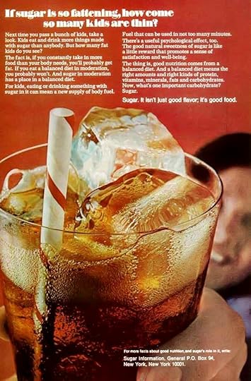 Yet another, from 1977, took a more orthogonal approach to the sugar-as-diet-aid idea, focusing on the health benefits of sugar in kids’ diets, in particular. Sugar’s “good natural sweetness,” the ad argued, its spunky glass of cola thrust forward by a blurry child, can be an important part of any “balanced diet.”