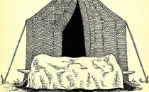 I’d call this excerpt the arrow passage. It starts with a Native American man hunched behind a large log or rock, getting ready to fire an arrow—presumably at prey. Then over the next few pages, we track this arrow as it flies through space. As it moves from left to right across the page, this arrow is also moving through time and space in a linear fashion. So it’s this unifying idea of directionality, of temporality—but at the same time, there’s a sense of humor about it because, as the arrow floats across the page, we’re also privileged with glimpses at what it looks like in 3,500,000 B.C., or 1870, and 1920, while children play pin-the-tail-on-the-donkey.
