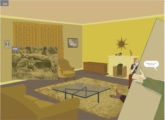 On every page, there are all these visual echoes going on. The pin-the-tail-on-the-donkey game and the arrow seeking its mark. The deer (presumably) being shot at, the deer being hung on the wall. In fact at the end of this sequence the taxidermy replaces a clock—an interesting comment on time itself.