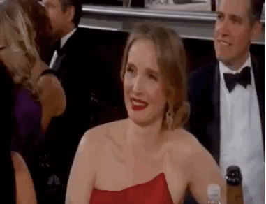 9:06 EST: And now, the Robert Downey Jr. experience. He manages to crack a joke about every single nominee, like this is the Oscars and it's time to tell a story about everyone. Julie Delpy and Greta Gerwig reactions below: