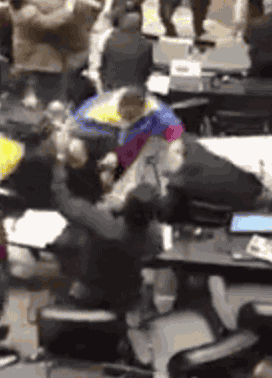 The Venezuelans know how to throw hands, though. Shortly after former President Hugo Chavez died and his hand-picked successor Nicholas Maduro was elected, in 2013, members of the opposition refused to acknowledge Maduro as their leader. Chaos ensued. The thugs in colorful warm-up suits are allegedly security guards who entered the fray. The whole video deserves to be seen, because these are real politicians throwing real punches. Apparently one person was hit over the head with a chair, like on professional wrestling.