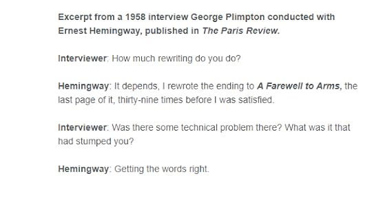 Ernest Hemingway famously said, “The only kind of writing is rewriting.” This tidbit of wisdom from the Nobel Prize-winning author who considered 39 different endings to his novel A FAREWELL TO ARMS.