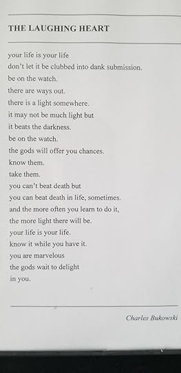 And then there’s one of my favorite Bukowski poems, “The Laughing Heart.” This reading by Tom Waits is perfect in tone and voice: