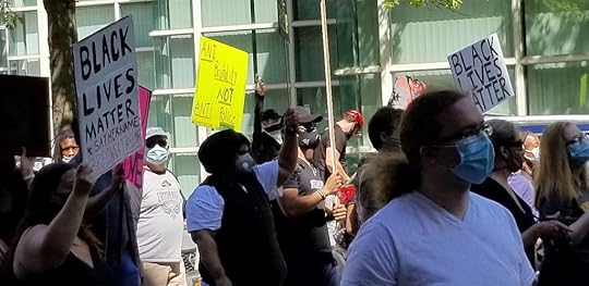 Yesterday we attended the protest rally and march in Troy. It was an incredible scene: thousands of protesters, peaceful marching, incessant chanting, almost everyone wearing a mask. I was proud to attend.
