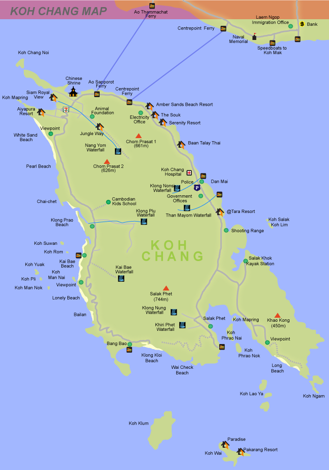 As an easy option and with the help of a bargain-priced flight with Air Asia, we looked at travelling back to Thailand for a few weeks. We know Thailand quite well by now – having travelled extensively throughout the country - although we had still yet to discover the eastern part of Thailand and Trat Province. On this side of the Gulf of Thailand there are a string of tropical islands that are known for snorkelling, diving, jungle hiking and waterfalls. The larger of these islands in the archipelago is known as Koh Chang or Elephant Island (เกาะช้าง).