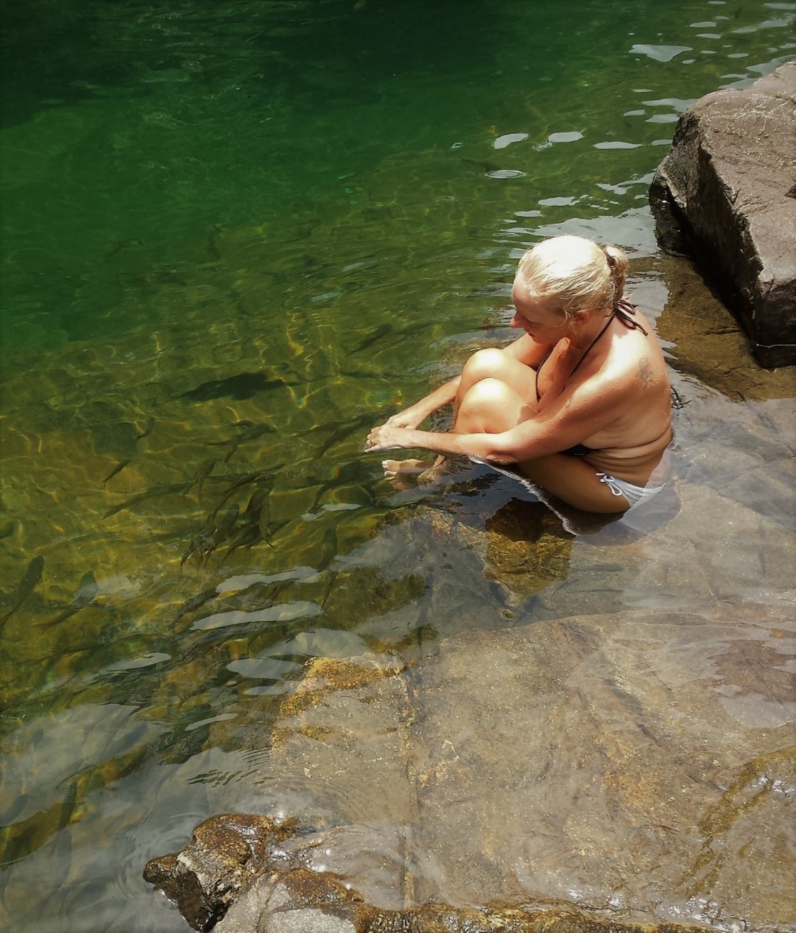 Looking down through clear water at all the fish!