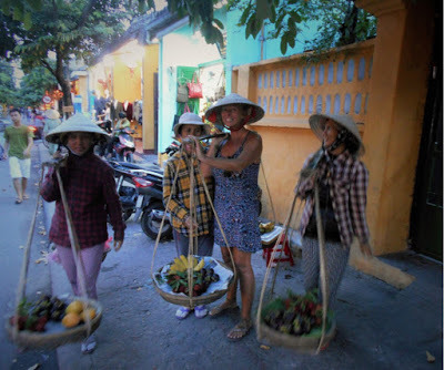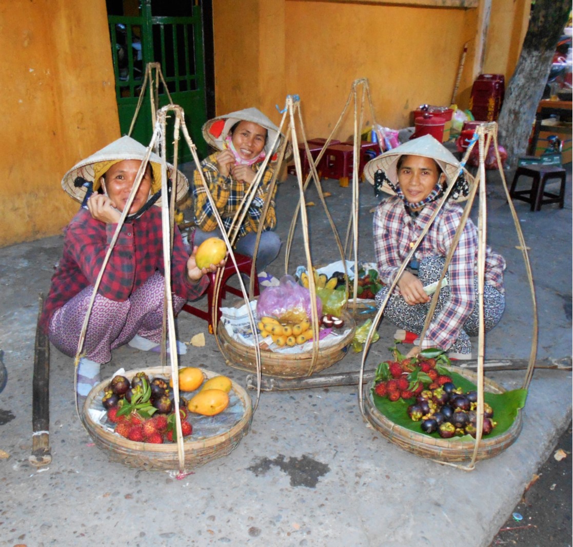 With the fruit sellers in Hoi An Town Vietnam