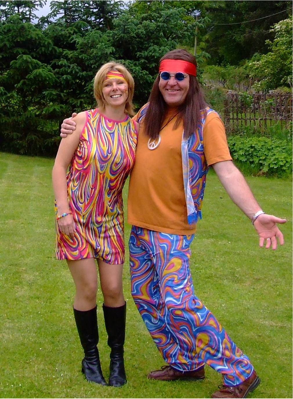 Me & Mr JH in '60's Hippys Fancy Dress Wear!(And yes, Mr JH IS wearing a wig!!) So Haste Ye Back…!