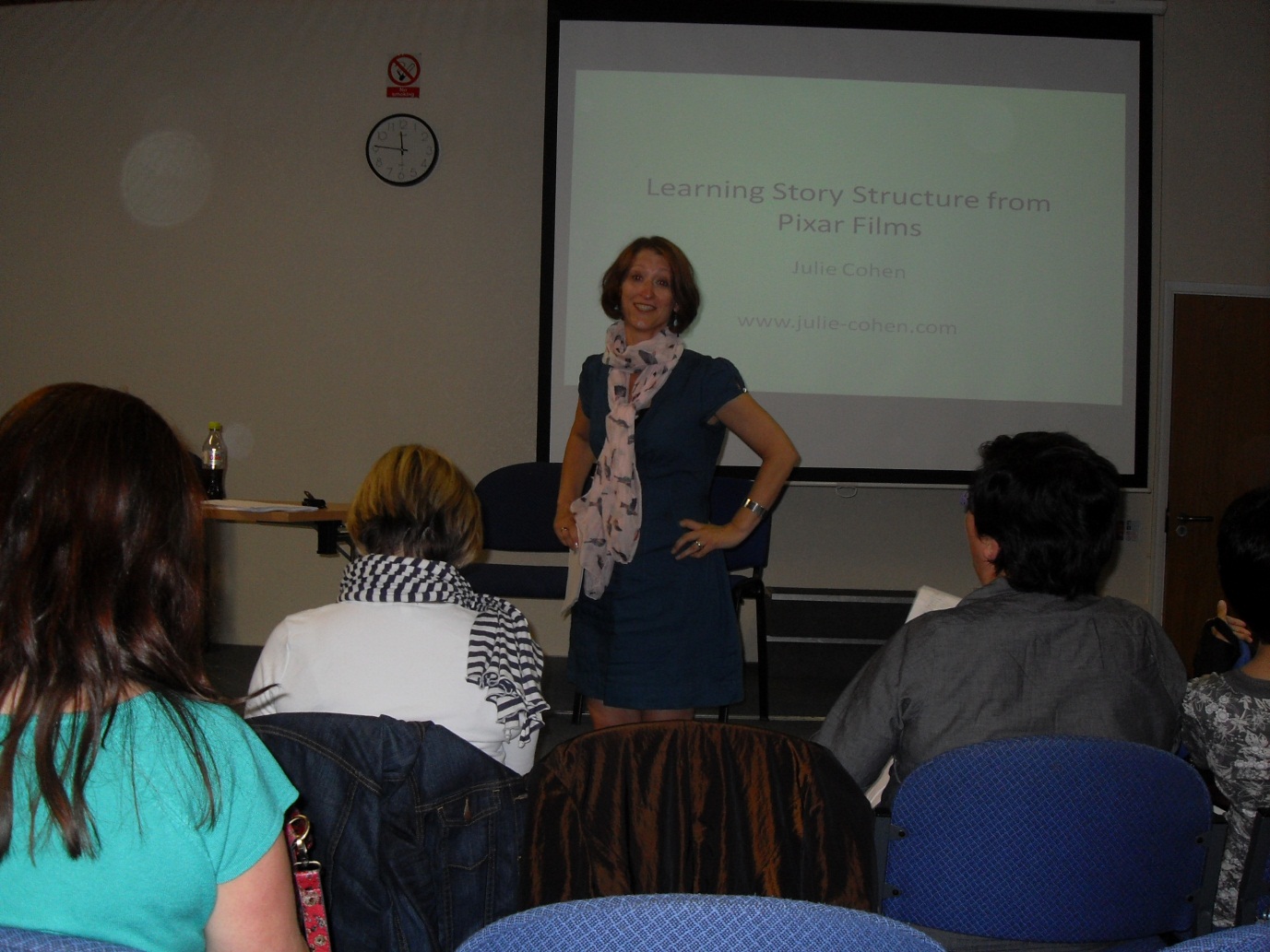 If I had to pick out just one session as a real highlight then it would have to be the last session I attended on Sunday, which was Julie Cohen’s workshop on ‘Learning Story Structure from Pixar Films’. It not only had me in tears (there were lots of Pixar film clips to demonstrate building emotional content!) but it was certainly the most valuable lesson on creating a story arc that I’ve ever had. Julie really knows her stuff and she is SO much fun!