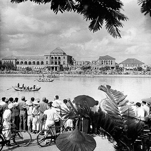 石萬里 Public domain via Wikimedia Commons: Long ago on Love River – Kaohsiung.The Love River: From the port estuary a river flows for twelve kilometres through Kaohsiung City.