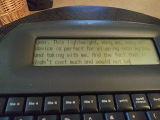 During what I refer to as my…"awful late off time" months, I fell into a rhythm of typing in idle moments and then putting the machine away, then taking it home at the end of the week to transfer all the files to computer. Then I would clear the device of all files and pack it back into my bag for next week. It was from these files that a number of my recent blog posts have come.