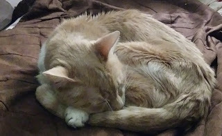 Today we say goodbye to our little buddy, Cliff, the cat who didn’t like us and didn’t really like anything but still hung around when he wanted. Oh, he was a tricky one. One minute he was aloof and staying just out of reach, the next he was rolling over and asking for pets…then biting your hand when you gave them up.
