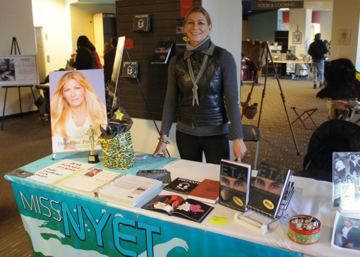 What a difference a new locale makes! Today, we are all sharing the space within the former Borders bookstore. It is well lit, warm and cosy! Great attendance throughout the day, which made for good sales and great conversations with the public. Channel 2 (CBS local news) was also in attendance and filmed my stand (along with my 2010 Oscar award from the French community, which the cameraman really liked!). CCLAP Publishing was also in attendance at the book expo, selling both anthologies "Amsterdamned if you do" and "American Wasteland", for which I have contributed short stories.