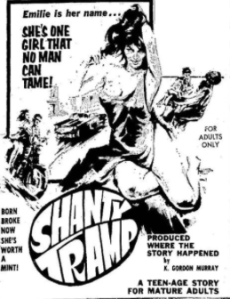 Though it is relatively tame by current standards, 1967’s Shanty Tramp was an “adult movie” in its day. I first came across this film when I was writing about Alabama governor Albert Brewer’s attempts in 1970 to close down theaters that were showing any kind of porn films. After a legal battle typical of Alabama politics, the courts ruled that Brewer had done the right thing the wrong way, so ultimately he lost, and theaters around the state returned to showing these films. In viewing it today, Shanty Tramp is more than a dirty movie. Considering its 1967 release date alongside its unstated location in “Dixie” and its wild plot, the film becomes a commentary on the lives of poor whites in the South and an indictment of the culture’s taboos surrounding interracial sex. Directed by Joseph G. Pietro and starring Eleanor Valli, two Italians whose brief lists of credits are mainly comprised of throwaway potboilers, Shanty Tramp wasn’t made to be a hall-of-famer, but it does provide an example of how outsiders used the Southern paradigm to create storylines.