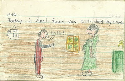 According to Mr Fantapants's class diary, he got up to April Fool's Day japes at Mama Fantapants's expense.
