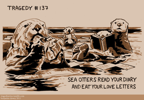 coverage of Banned Books Week: Forever YA's list of books that should be banned, Paper Hangover's guide to how to write a banned book and a video from the queen of banned books, Judy BlumeAlien Onion's reminder life before the internet (they were bleak days, young friends)Mental Floss's revelation that the name Punky Brewster came from a real personMindy Kaling's article on stereotypes of women in romantic comedies in the New Yorkera calendar of rathergoodlookingandsomewhatscantilyclad librarians baring their souls (and other bits) to raise money for It Gets Better (aka a guilt-free perv) (via The Centred Librarian)Rookie's quest to find good news about teenagersand finally, artist Ben Dewey's tragedy series reminded me that there are worse things than a cold (via The Hairpin)
