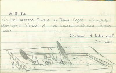 What I love about this entry is the seamless segue way between what Mr F had been told to write about (what he did on the weekend) and what he wanted to draw (falling out of a canoe). I might try to use the same technique to spark up my WIP this week...