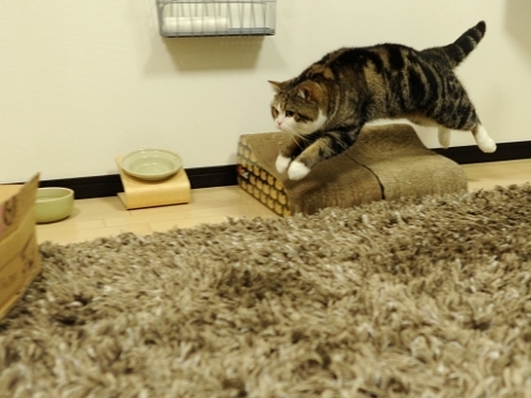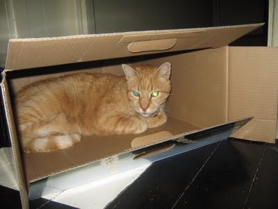 In reality, I suspect he just wanted to get out of a draught, but I like to think the Ginger Menace was paying tribute to our favourite box-loving cat, who turns four today. Happy birthday, Maru!