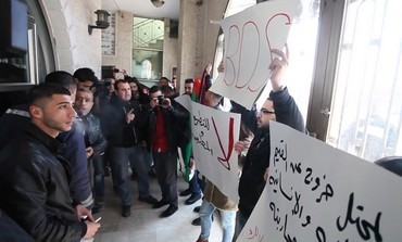 The activists protested against the presence of Israelis in the city, banging on the main gate and chanting, “Israelis out!” Others chanted, “No to negotiations, no to normalization, this homeland is not for sale” and “Our people want RPG [rocket-propelled grenades], not security coordination.”