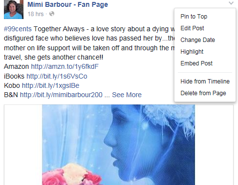 See the photo above where the little arrow is clicked to open this box? It says “Pin to top” right? You click there. If it asks you to unpin the earlier post, say yes. Easy-shmeasy!