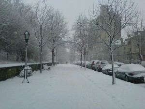 Prospect Park is Brooklyn's answer to Central Park. It had the same designers, in fact, and is slightly bigger. It's slightly less cultivated, but it's similar in a lot of ways, too: big lawns, picnic areas, an ice rink, a lake. During the blizzards this year, the park rented out sleds.Prospect Park West in the Snow