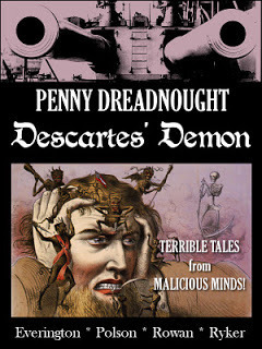 Following last month's 'Introducing Penny Dreadnought', we bring you four new stories in 'Descartes' Demon'. What do you do when you turn a corner and you find yourself where you hadn't intended to go, and you turn back and find that what's behind you isn't where you came from? When nothing makes sense, do you doubt your own sanity, or the world's?