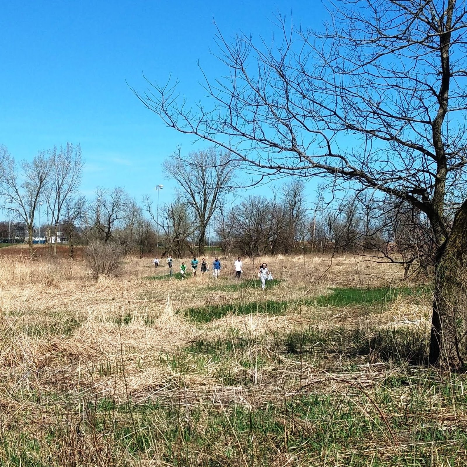 I did get to write some fun clues for the marathon Easter egg hunt, though. Here are the hunters nearing the mother lode of eggs: