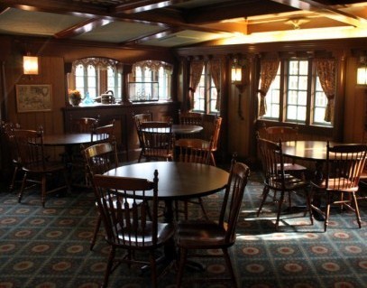 Columbia Harbour House actually has a fairly interesting menu for a fast-food place. Plus the decor's exquisitely detailed, as is everything Disney. Part of the upstairs extends over the passageway from Fantasyland to Liberty Square, so it's a fun place to look out upon all the suckas slapping the pavement on their way to Pecos Bill's or some other overcrowded venue.