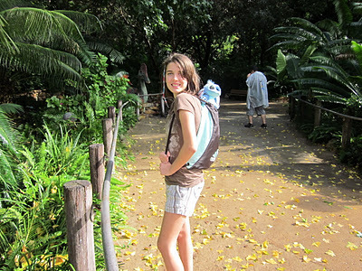 Here's my Cutey McPretty venturing into the Cretaceous Trail with the Stitch she purchased moments before (at a loud, tacky and horrible gift shop):