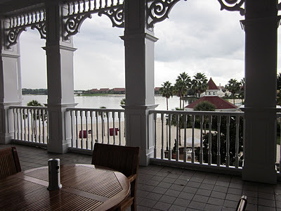 The Grand Floridian is one monorail stop or a simple, relaxing ferry journey from the Magic Kingdom. And its got a pool bar. If you really want to get away from the action to recharge, you can take your drink up to the second floor of the main building to the smoking balcony pictured below (veer to the right after getting off the monorail, pass the staircase down to the pool area, and you're there). We found it completely uninhabited in the early afternoon.