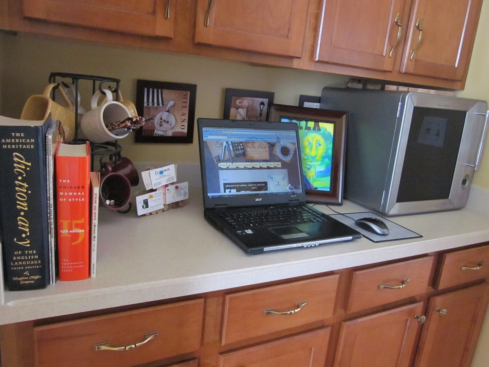 What I discovered about myself when I got my very first laptop almost 2 years ago, is that I'm a rabbit at heart and prefer to hole into little cubbies. Despite my new ability to venture away from the desktop and out of the confinement of the small office, I've landed in the even smaller butler's pantry as my primary writing space.