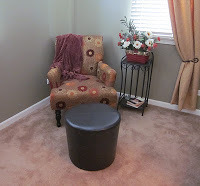 And when my attention deficit requires a change of scenery, I've got a couple other favorite spots. To the left is the nook in my bedroom where I make the laptop earn it's name. And when the temperatures warm up and the leaves sprout to form a little den, I spend long nights out on my screen porch.